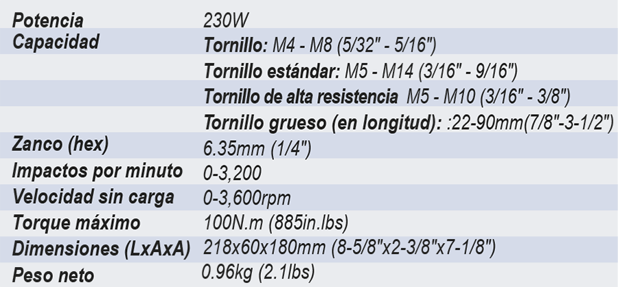 NOTA: El equipo estándar (accesorios), las especificaciones y la fotografía pueden variar. Los accesorios y/o tecnologías pueden no estar incluidos desde origen con las herramientas o no estar disponibles en el país aunque se indiquen en esta ficha técnica.