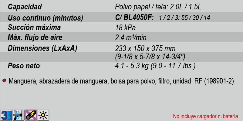 NOTA: El equipo estándar (accesorios), las especificaciones y la fotografía pueden variar. Los accesorios y/o tecnologías pueden no estar incluidos desde origen con las herramientas o no estar disponibles en el país aunque se indiquen en esta ficha técnica.